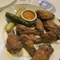 Had an incredible experience here! Definitely recommend making reservations. My partner and I choose to split the pickleback chicken wings and the prime NY steak. The steak was cooked perfectly medium rare and the chicken wings were super unique and delicious!! Highly recommend giving them a try if you are a pickle fan. Others in our party enjoyed the scallops and the salmon. We shared a couple desserts as well. Great service! If you're in the area and looking to enjoy a fancy meal, I recommend this place.